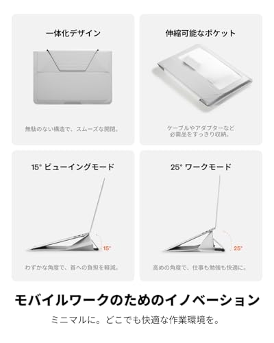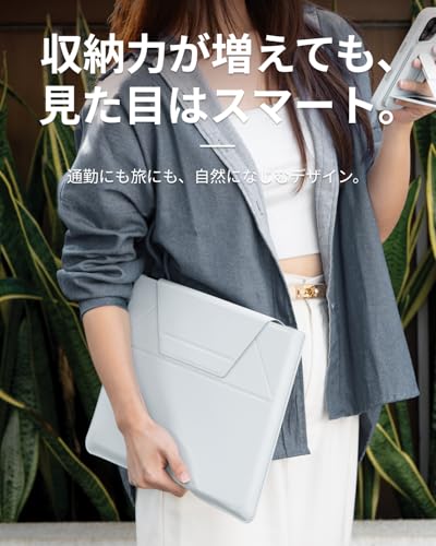 - 【1秒でPCスタンドに】MOFTスリーブケースは収納・保護だけでなく、スタンド機能も付いています。薄さわずか7㎜ながら2段階の角度調節に対応しています。デスクでも、膝の上でも、あらゆる姿勢での作業をより快適にしてくれます。