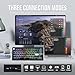 - トリモードワイヤレス接続:80%コンパクトレイアウトを採用したトリモードワイヤレスTH85キーボードで、究極の柔軟性を体験してください。2段階調整可能なキックスタンドの下に内蔵された2.4GHzレシーバー収納スペース、上部に配置された直感的なモード切り替えスイッチ、そしてトップフレームを彩るダイナミックなRGBライトストリップが、洗練されたモダンなデザインと多機能な互換性を実現。Bluetooth、2.4GHzワイヤレス、USB-C有線接続のシームレスな切り替えが可能で、直感的な操作を提供します。PC、タブレット、ノートパソコンなど、さまざまなデバイスで安定した接続を楽しみ、煩わしいケーブルのない快適な環境を実現します