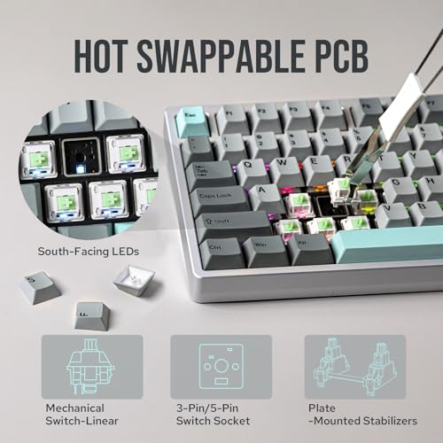 - 【ホットスワップ対応&サウスフェイスRGBバックライト】はんだ付け不要のホットスワップPCBを採用。スイッチの交換が簡単に行え、好みの打鍵感を手軽に追求できます。サウスフェイス(下向き)配置のRGBバックライトは、キーキャップとの干渉を抑えつつ、鮮やかで調整可能な光を発します。視覚的な魅力を高めるだけでなく、主要なキーキャッププロファイルにも幅広く対応。カスタマイズの自由度と打鍵の快適性を両立した設計です。