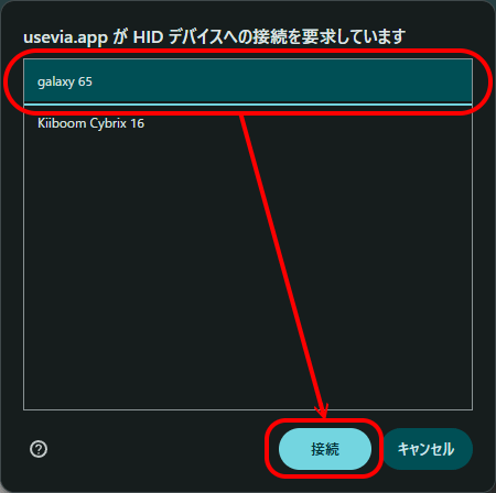 ※設定時には『EPOMAKER Galaxy65 メカニカルキーボード』をUSBケーブルで接続しておく必要があります。