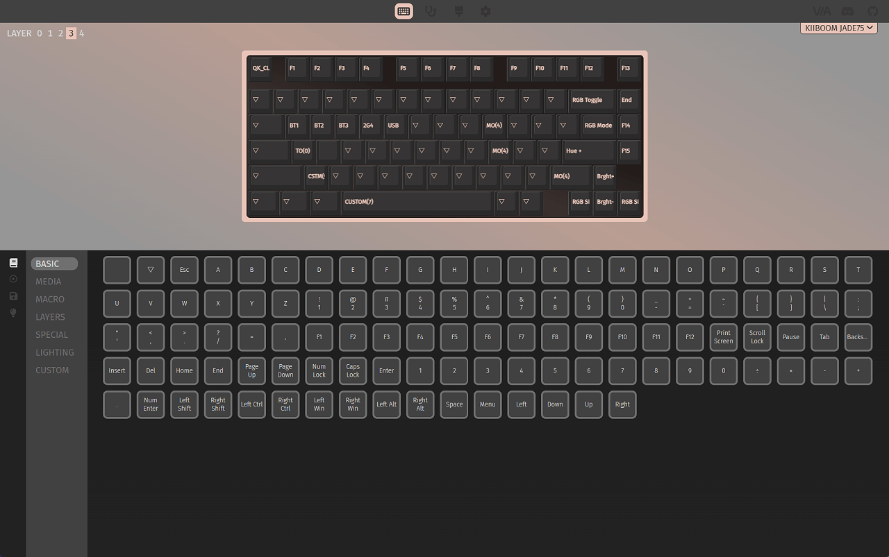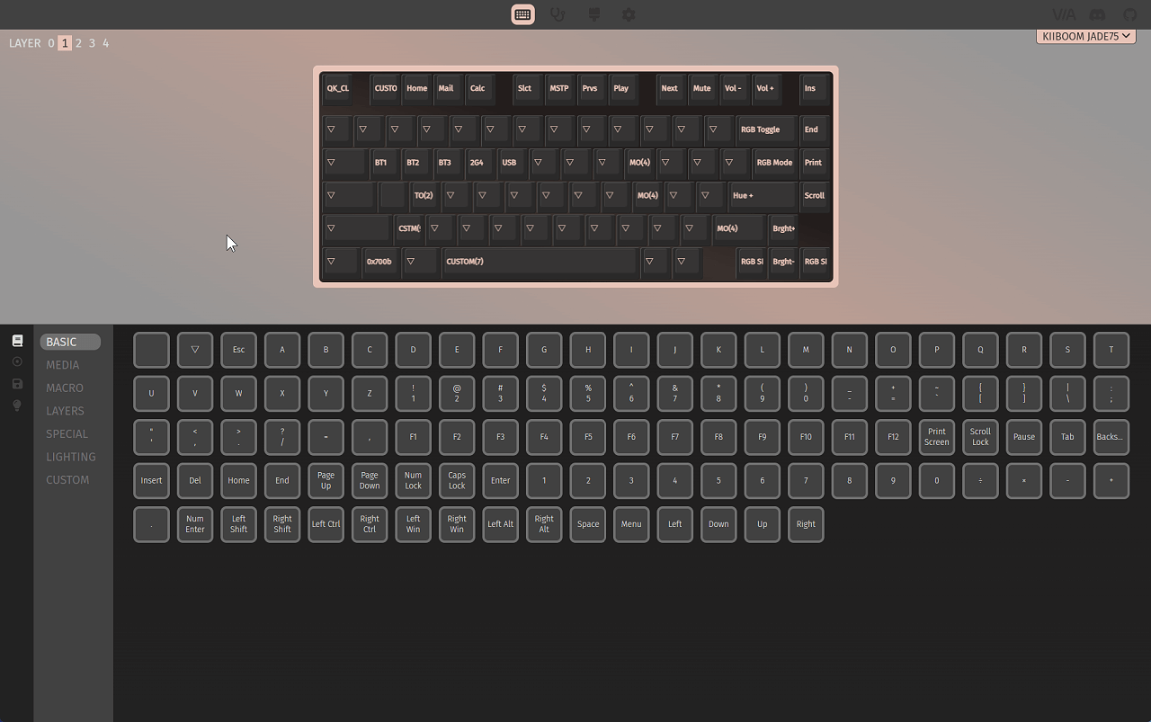 VIA環境構築後、『KiiBOOM Jade75 メカニカルキーボード』のキーマップを変更・反映させることがができます。