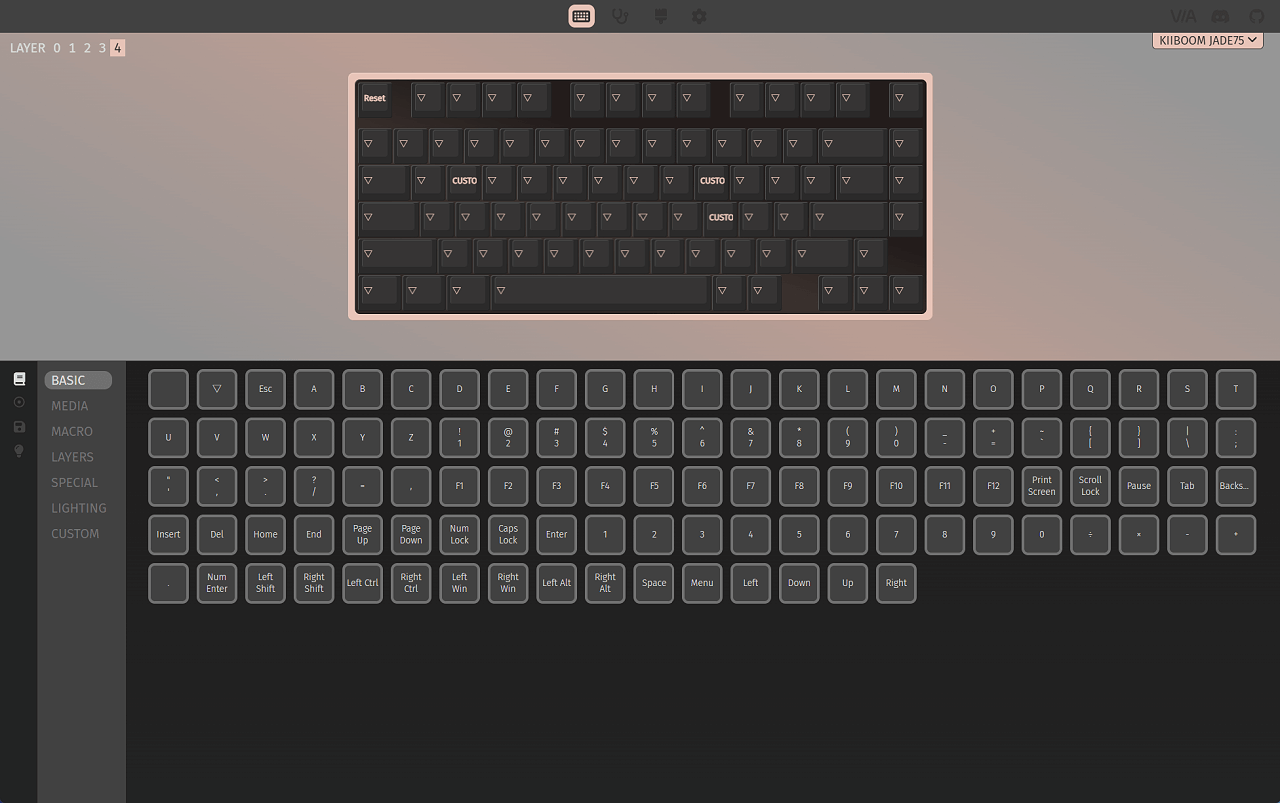 『KiiBOOM Jade75 メカニカルキーボード』は、VIAソフトウェアを使用することで、各キーの機能をカスタマイズし、リアルタイム表示でレイアウトを再割り当てすることができます。更にマクロをプログラムして様々なプロファイルも作成することができます。