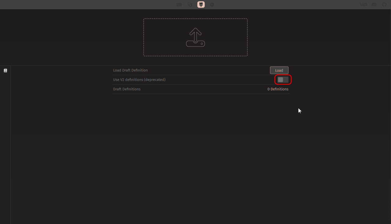 「Use V2 definitions (deprecated)」設定項目をオフにします。