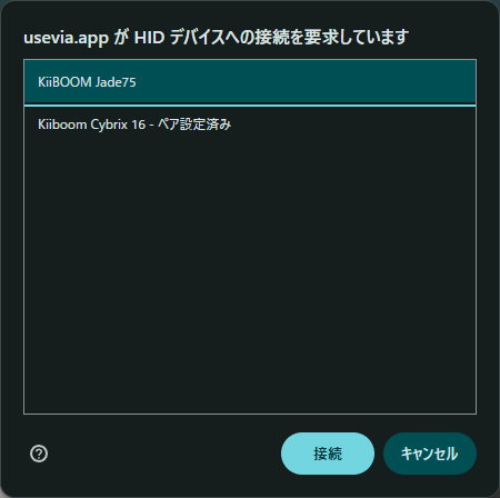 【KiiBOOM Jade75】選択後、【接続】を選択します。