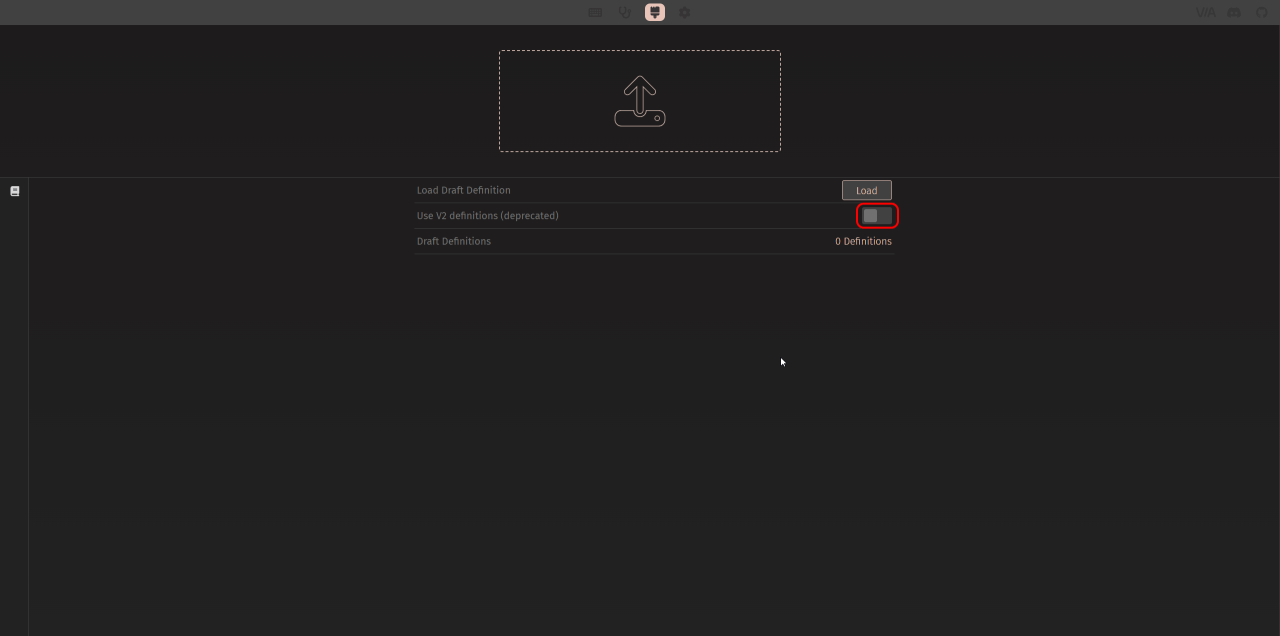 「Use V2 definitions (deprecated)」設定項目をオフにします。