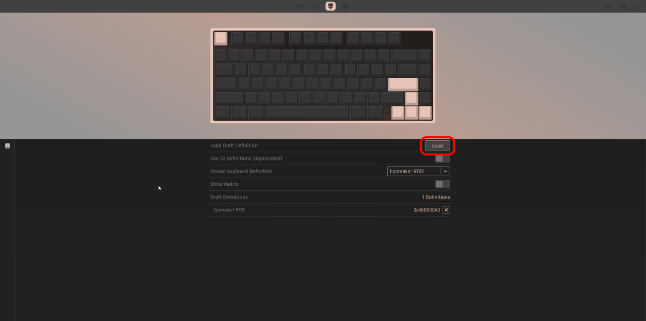 最初に「EPOMAKER RT82 JSON」データファイルをダウンロードしておく必要があります。
