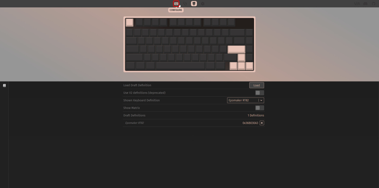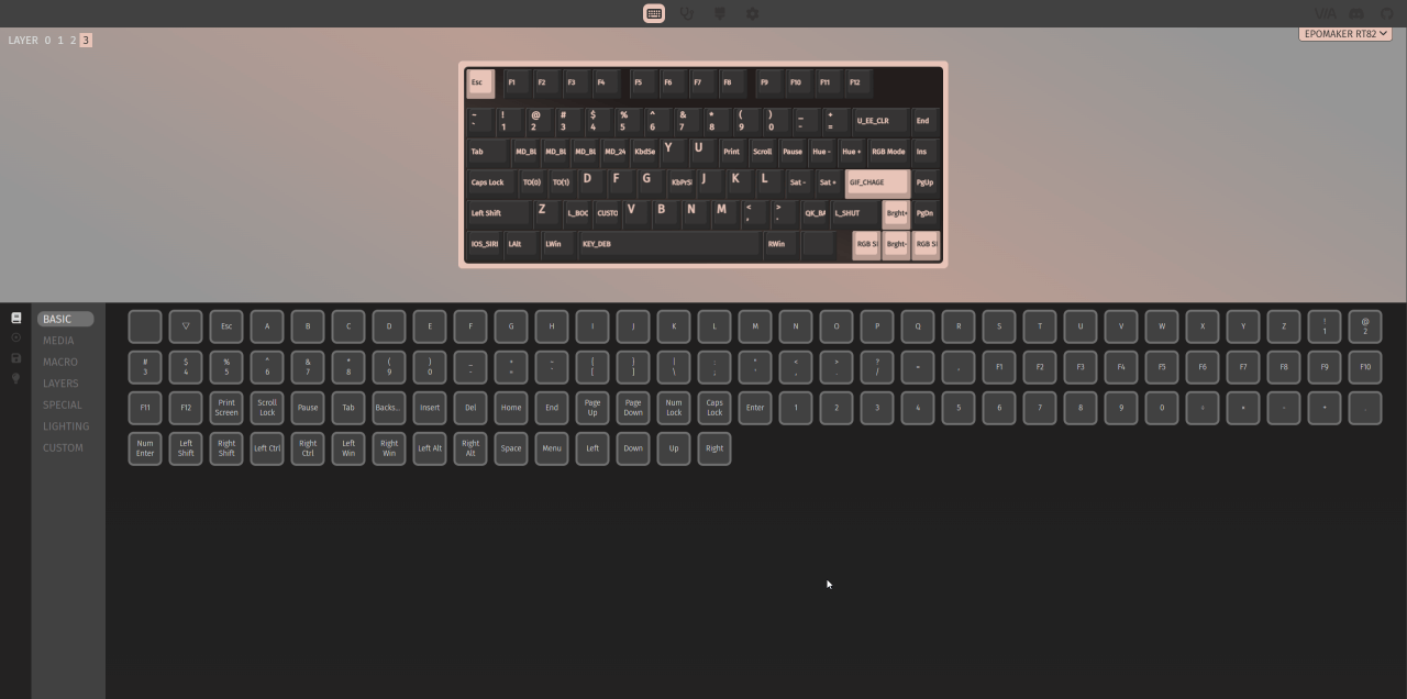 VIA環境構築後、『EPOMAKER RT82 メカニカルキーボード』のキーマップを変更・反映させることがができます。