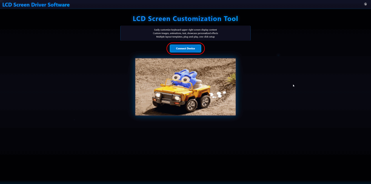 Webアップローダー LCD Screen Driver Softwareにアクセスされるので、【Connect Device】を選択します。