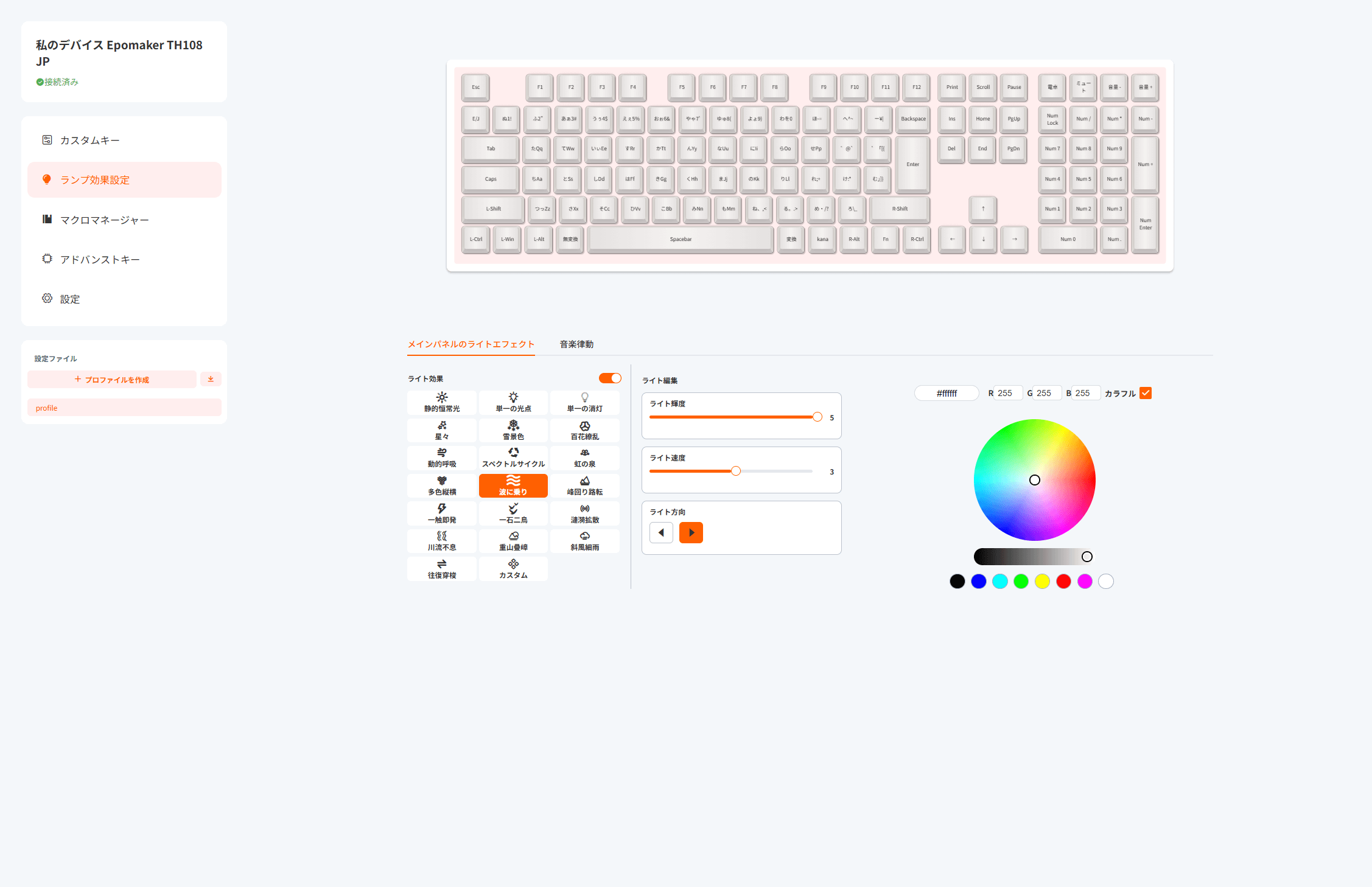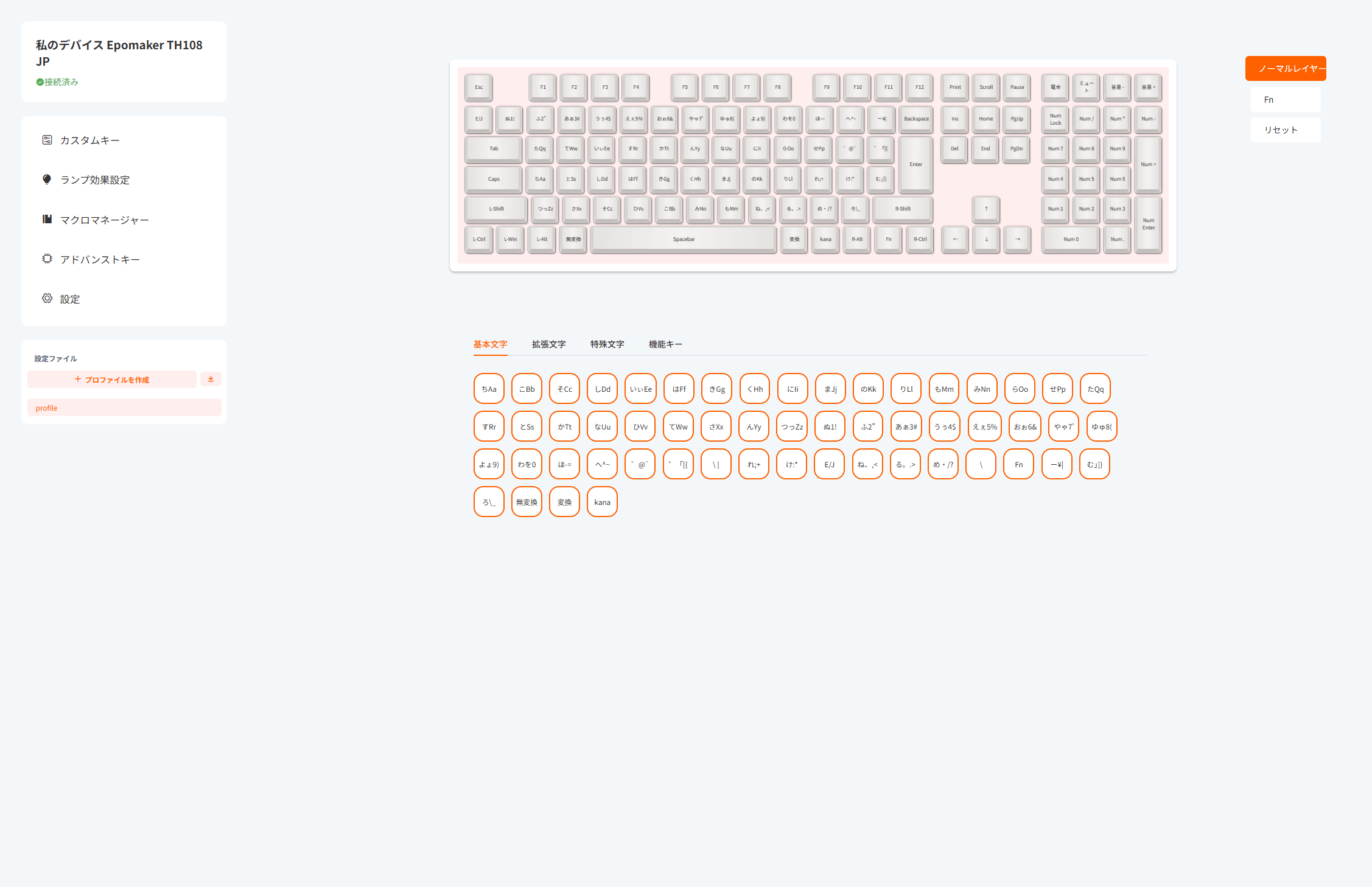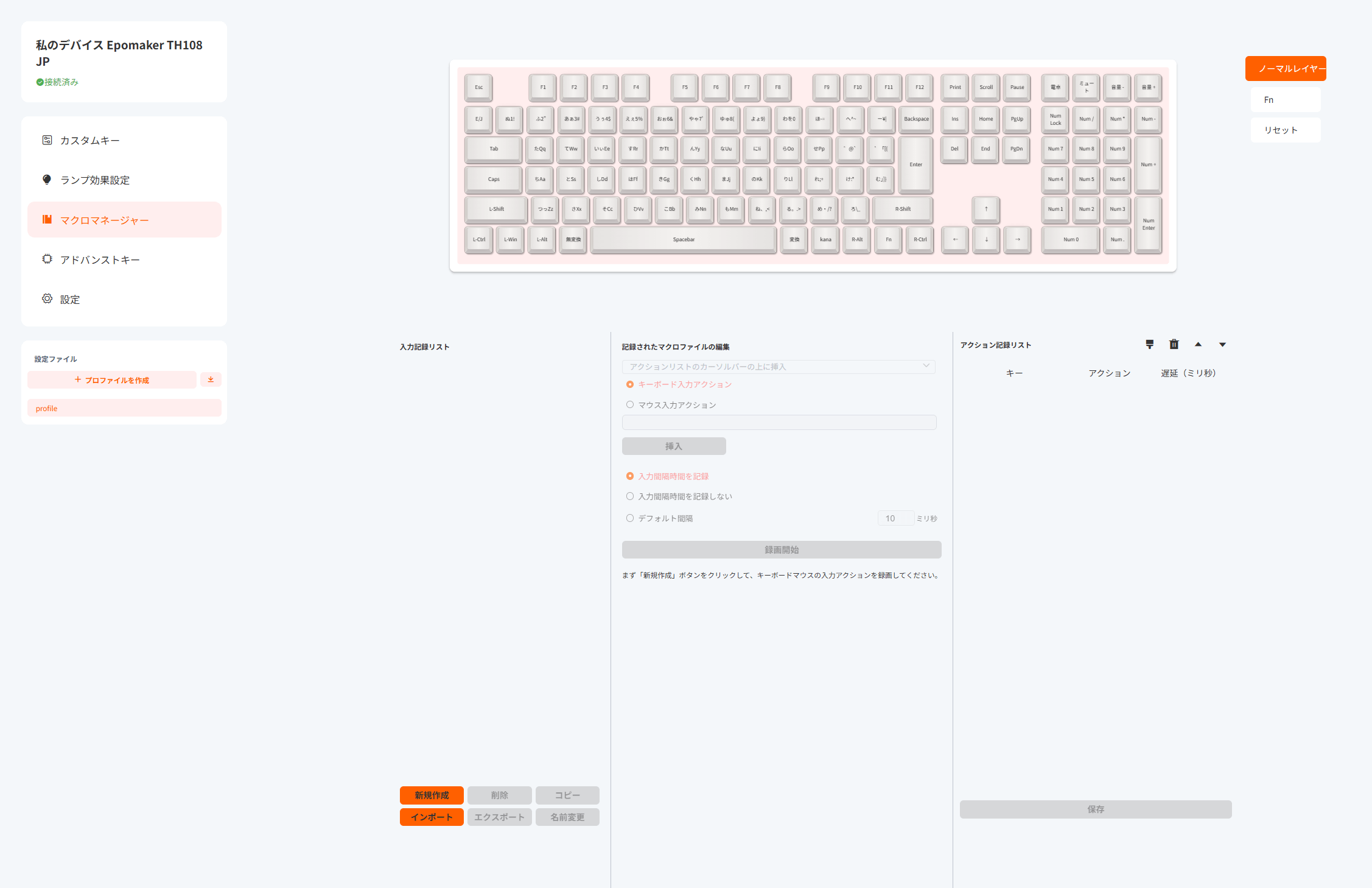 『EPOMAKER TH108 JIS メカニカルキーボード』を設定するアプリが起動するので、