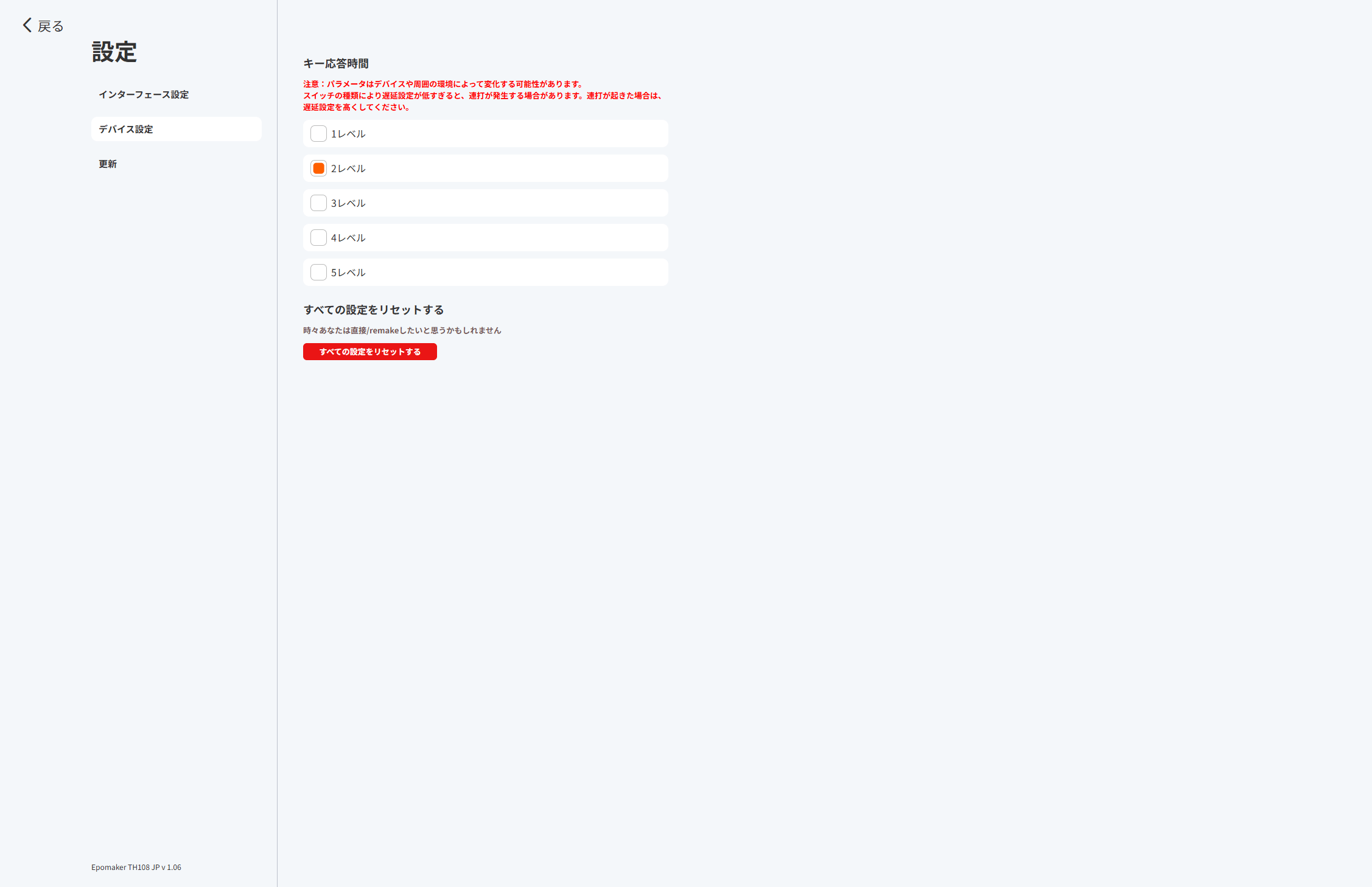 の設定を行います。また、リセットや『EPOMAKER TH108 JIS メカニカルキーボード』のアップデートも行うことができます。カスタマイズする必要がなければ特に使用する必要はありません。